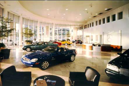Fletcher Jones Motorcars is the largest new and pre-owned Mercedes-Benz dealership in the world. The 350,000 sf, $15 million dealership is widely imitated due to its enormous success. The architecture by Bauer and Wiley reflects the natural environment of rolling hills, wetlands, native plants, and sandy marshes of the upper Newport Bay. The interior projects a professional, yet comfortable and customer-friendly image. The store takes customer service and amenities to a new level in auto retailing with multiple luxurious customer lounges with cappuccino bars, customer workstations, a retail boutique, manicurist, shoeshine stand, concierge, children's playroom, and putting green.